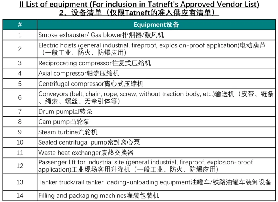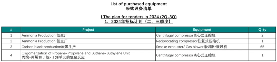 日前,鞑靼石油(Tatneft)公司委托东方尚能咨询机构发布2024年第二三季度采购计划,为其氨生产单元、碳黑生产单元和丙烷-丙烯、丁烷-丁烯单元寻找压缩机、鼓风机、输送机、泵设备、热交换器、油罐车装卸设备、罐装包装设备、电葫芦等。