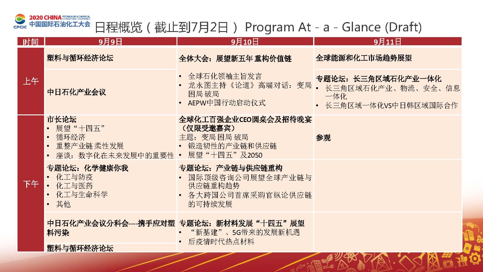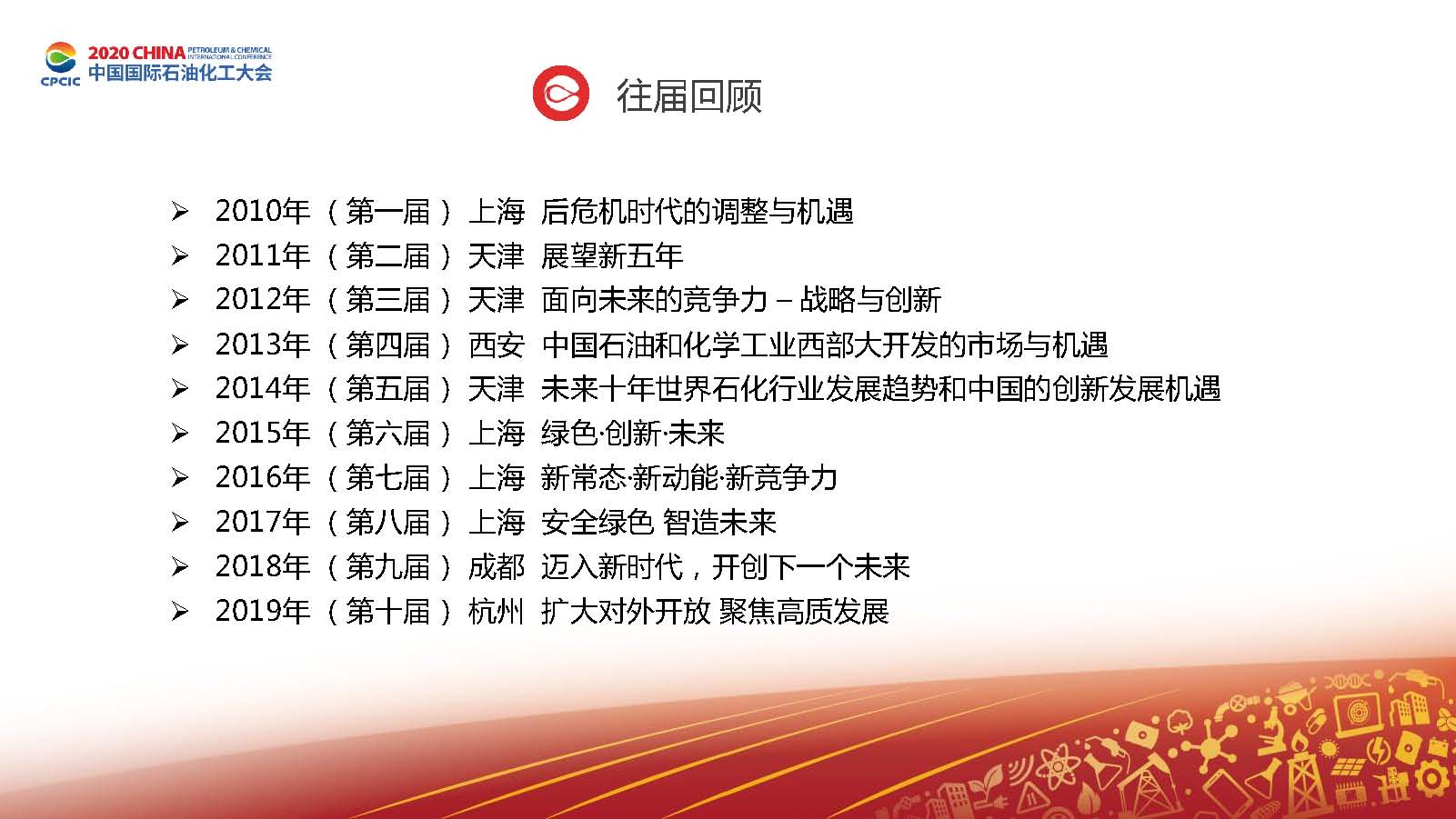 您现在的位置是:首页 > 会议活动网站首页会议活动 2020 中国国际石油化工大会(CPCIC)介绍 管理员 2020-08-19 6124 次阅读 TAG: 无标签 上一篇:Topco与阿里巴巴联手打造第十届中国石油化工装备采购峰会暨展览会(CSSOPE 2020) 下一篇:CSSOPE重磅发言人:伊朗采购团确认演讲并采购石油设备 相关文章 特别推荐 【火爆出炉】CSSOPE 2025 全球采购对接会排期表 阅读 全球氢能项目大汇总,快来点击索要 阅读 随机推荐 乌干达中海油Kingfisher油田EPC 3包项目正式开工 聚力提质增效 加速项目建设——寰球广东石化项目建设... 2020-10-28 09:51:37 德国斥资数十亿欧元租液化天然气码头!今年冬季或使用 2022-04-20 09:04:23 日挥证实签署沙特长期协议 2020-12-24 08:36:12 中国石化海外投资控股有限公司揭牌成立 2023-07-03 17:24:05 点击排行 远大斩获氢气压缩机大单 意大利塞班( SAIPEM)油气项目及采购计划:CSSOPE 为你解读 2019-03-14 15:21:04 集团公司召开2019年HSSE工作视频会议 2019-01-04 18:12:57 石油党员党建信息化平台交纳党费上亿元 2019-01-11 16:33:49 中国石油2022年集中采购招标公告 2022-02-11 20:43:22 标签 会议 中国石化新闻网 中国石油新闻中心 转载 原创 关注我们