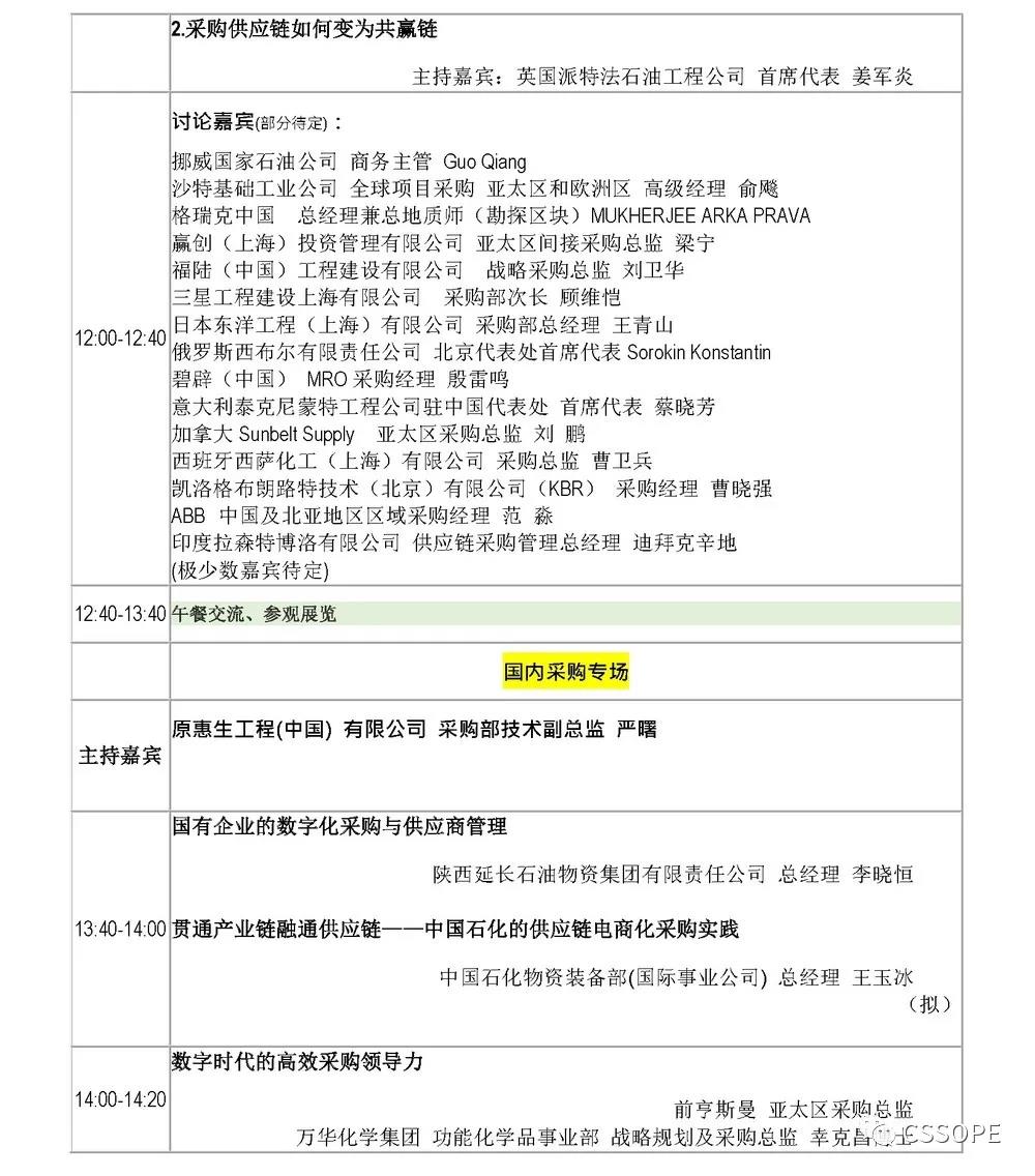 日程出炉:阿美、SABIC、挪威国油、巴斯夫、朗盛、三大油、万华、恒逸、福陆、林德、三星、派特法、斯伦贝谢、DESCON、力拓、拉森特博洛、天辰、惠生、巨涛等众多采购大咖云集CSSOPE采购会