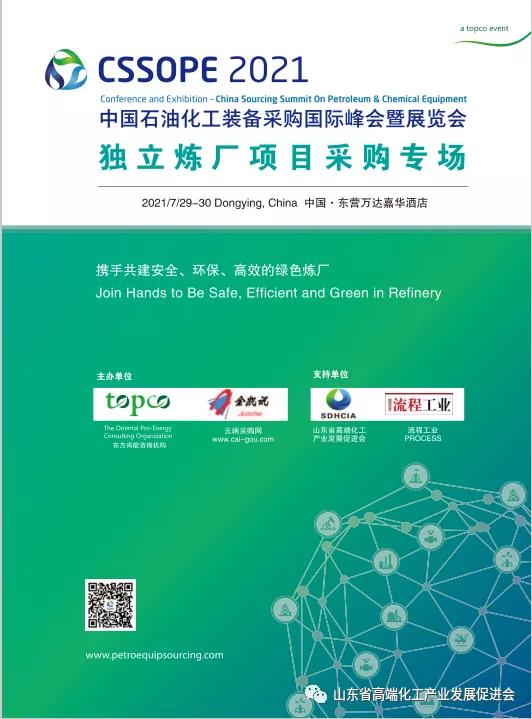 “中国石油化工装备采购国际峰会暨展览会(CSSOPE)- 独立炼厂项目采购专场” 应运而生,将于2021年7月29-30日在山东东营举办,大会由东方尚能咨询机构与金凯讯云采科技联合主办。旨在围绕炼化企业“互联网+”供应链及数字化采购管理等新的解决方案,为设备采购方与供应方提供对接交流平台,节省采购成本和提高采购效率,同时也是优秀供应商找到潜在买家和了解项目采购需求的最直接渠道。