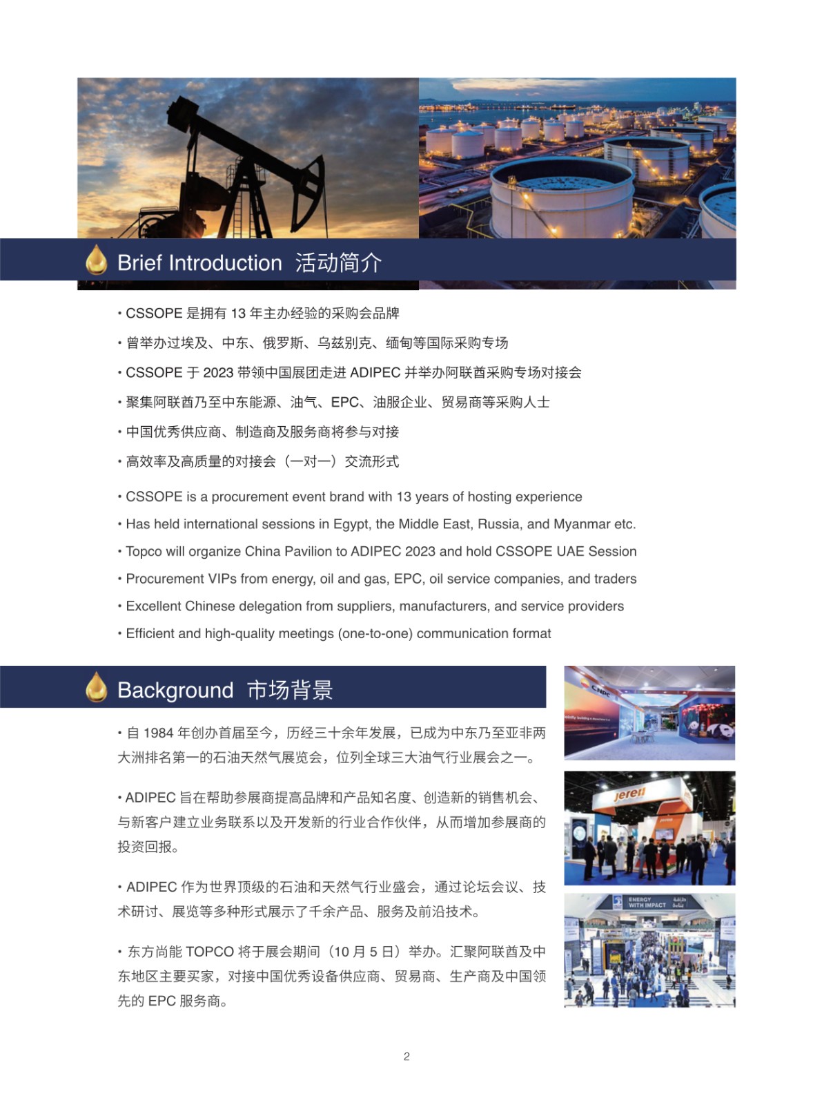 您现在的位置是:首页 > 会议活动网站首页会议活动 【走进阿联酋】CSSOPE UAE 2023带您拓展中东市场 管理员 2023-09-12 4560 次阅读 TAG: 无标签 上一篇:国联股份主办“联产业,链未来”产业数字经济发展专场推介会圆满落幕 下一篇:重磅 | 第七届中阿能源合作大会即将在海口召开 相关文章 特别推荐 【火爆出炉】CSSOPE 2025 全球采购对接会排期表 阅读 全球氢能项目大汇总,快来点击索要 阅读 随机推荐 肯富来水环真空泵入围国家级单项冠军名单! 兰石重装进军氢能与氨氢融合领域 广东兰石氨氢能源装... 2023-12-21 09:02:46 打造高质量发展的强劲引擎——从区域协调发展看奋进中... 2019-03-11 14:49:25 巴斯夫(广东)一体化基地项目EOEG装置开工 2022-09-20 15:06:44 沙特阿美总裁兼首席执行官呼吁出台全新能源转型计划,... 2024-10-23 09:47:06 点击排行 新基建热潮,油气行业有什么机会? 意大利塞班( SAIPEM)油气项目及采购计划:CSSOPE 为你解读 2019-03-14 15:21:04 集团公司召开2019年HSSE工作视频会议 2019-01-04 18:12:57 石油党员党建信息化平台交纳党费上亿元 2019-01-11 16:33:49 中国石油2022年集中采购招标公告 2022-02-11 20:43:22 标签 会议 中国石化新闻网 中国石油新闻中心 转载 原创 关注我们