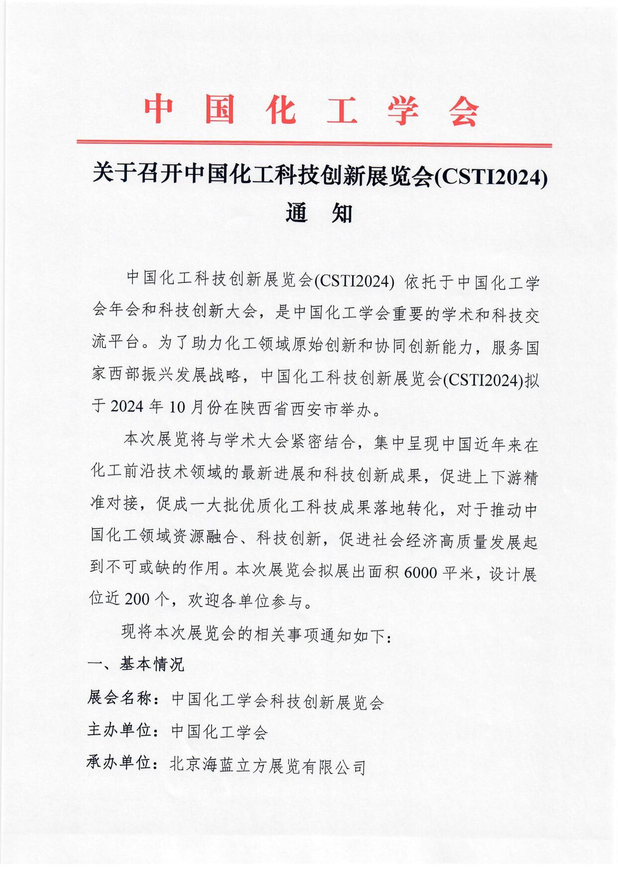 您现在的位置是:首页 > 会议活动网站首页会议活动 中国化工学会关于召开中国化工科技创新展览会(CSTI 2024)的通知 管理员 2024-01-17 3555 次阅读 TAG: 无标签 上一篇:埃及采购专场一中国石油化工装备采购国际峰会 下一篇:工程巨头CCC确认参与CSSOPE埃及采购专场 相关文章 特别推荐 【火爆出炉】CSSOPE 2025 全球采购对接会排期表 阅读 全球氢能项目大汇总,快来点击索要 阅读 随机推荐 深度分析!后工业化时代的中国化工企业成长之路(三) 正泰与沙特ATC签署战略合作协议 2023-09-25 13:38:05 前沿观察 | 中国与阿富汗签订25年石油开采协议 2023-01-09 09:04:58 SWS外高桥造船公司精彩亮相2025阿布扎比国际石油博览会... 2025-11-07 11:26:27 第三届丝路国际合作高峰论坛将于7月在陕西西安举办 2022-05-11 06:28:52 点击排行 30个项目同日开建!这个炼化项目有新进展 意大利塞班( SAIPEM)油气项目及采购计划:CSSOPE 为你解读 2019-03-14 15:21:04 集团公司召开2019年HSSE工作视频会议 2019-01-04 18:12:57 石油党员党建信息化平台交纳党费上亿元 2019-01-11 16:33:49 中国石油2022年集中采购招标公告 2022-02-11 20:43:22 标签 会议 中国石化新闻网 中国石油新闻中心 转载 原创 关注我们