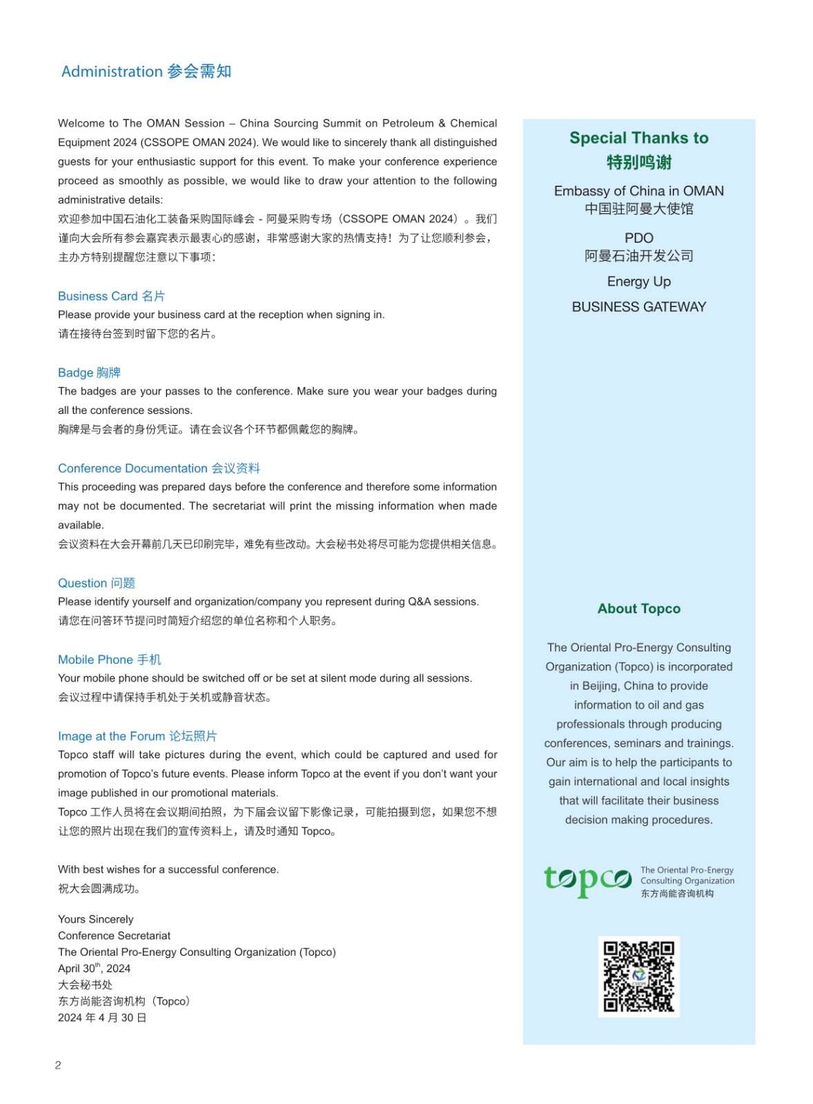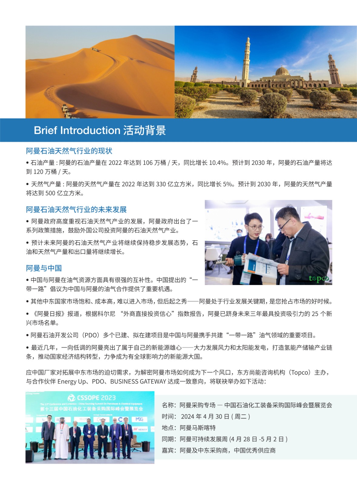 您现在的位置是:首页 > 会议活动网站首页会议活动 走,去阿曼,下个“风口”见!阿曼采购专场4月29日召开 管理员 2024-04-19 1374 次阅读 余位有限,先到先得更多信息,敬请联系秦 瑶 158 0112 8545蒋淑慧 136 7136 8002赵 云 186 0031 3778高先生 134 3931 3603 TAG: 无标签 上一篇:三大能源公司高层到访海油工程 下一篇:第20届国际现代工厂/过程自动化技术与装备展览会(FA/PA 2024)招展通知 相关文章 特别推荐 【火爆出炉】CSSOPE 2025 全球采购对接会排期表 阅读 全球氢能项目大汇总,快来点击索要 阅读 随机推荐 厚积薄发 CCUS重点工程加速推进 签大单!汪东进出席中国海油第三届进博会全球采购签约仪式 2020-11-06 08:38:50 北方华锦联合石化有限公司精细化工及原料工程项目420万... 2023-03-16 09:41:51 长庆物资基层改革转型发展收获历史性成就 2021-10-11 08:59:46 方向:宁总给予鲁西厚望 2021-04-07 10:34:10 点击排行 孙全军到尼日利亚国家公司调研 意大利塞班( SAIPEM)油气项目及采购计划:CSSOPE 为你解读 2019-03-14 15:21:04 集团公司召开2019年HSSE工作视频会议 2019-01-04 18:12:57 石油党员党建信息化平台交纳党费上亿元 2019-01-11 16:33:49 中国石油2022年集中采购招标公告 2022-02-11 20:43:22 标签 会议 中国石化新闻网 中国石油新闻中心 转载 原创 关注我们