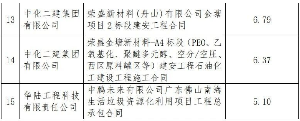 (3)荣盛金塘新材料-A4 标段(PEO、乙氧基化、聚醚多元醇、空分/空压、 西区原料罐区等)建安工程石油化工建设工程施工合同;荣盛新材料(舟山)有限公司金塘 项目 2 标段建安工程合同