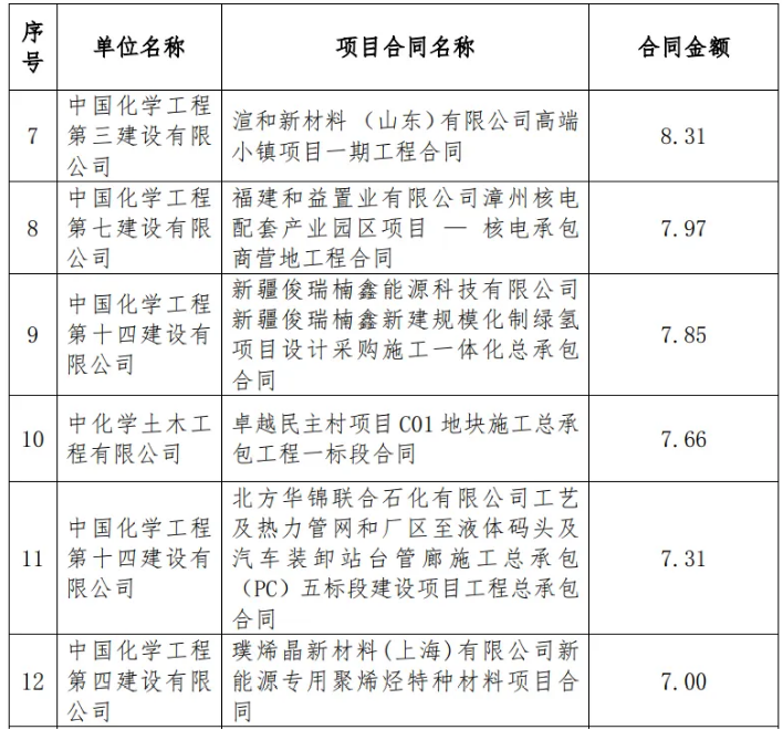 该项目建设内容为30万吨/年氯乙烯(VCM)主装置及配套辅助设施,建设单位为中国成达工程有限公司,合同金额7.54亿元。