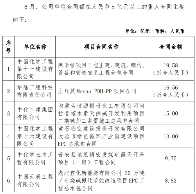 (1)湖北宜化新能源有限公司 20 万吨 /年烧碱搬迁节能改造项目 EPC 工 程总承包合同