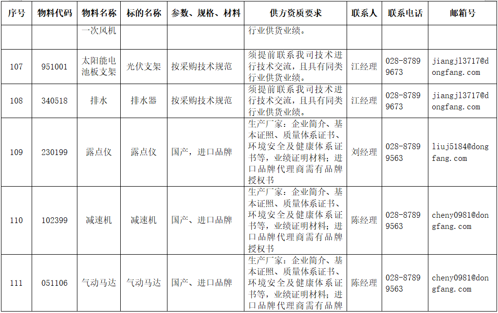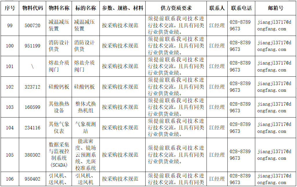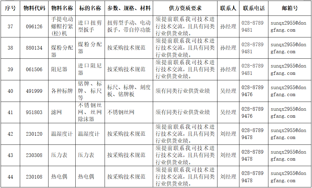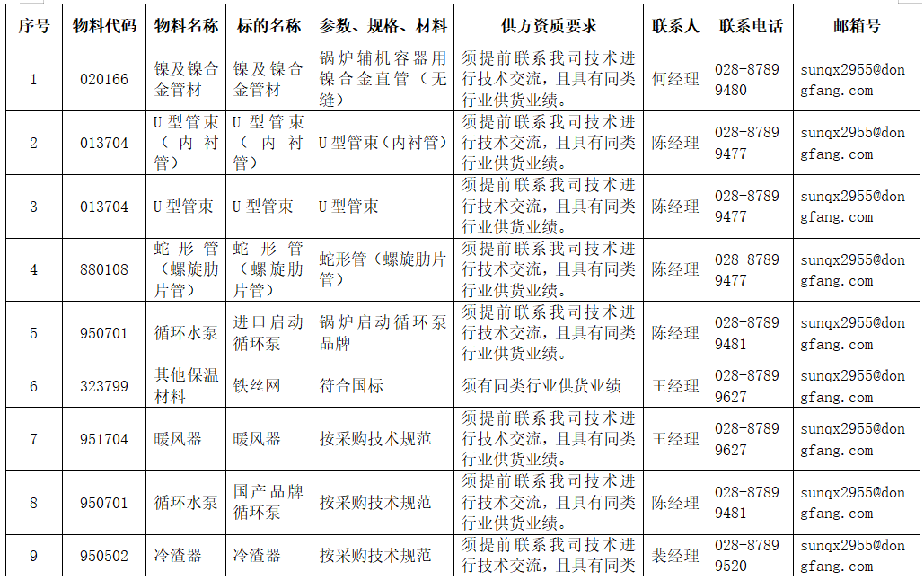 东方电气集团东方锅炉股份有限公司拟在全国范围内对附件清单中的物项进行公开寻源,欢迎有意向和符合条件的供应商积极参与报名。