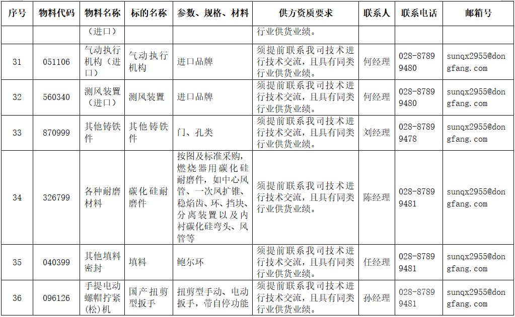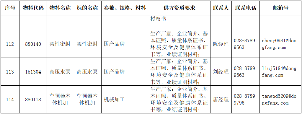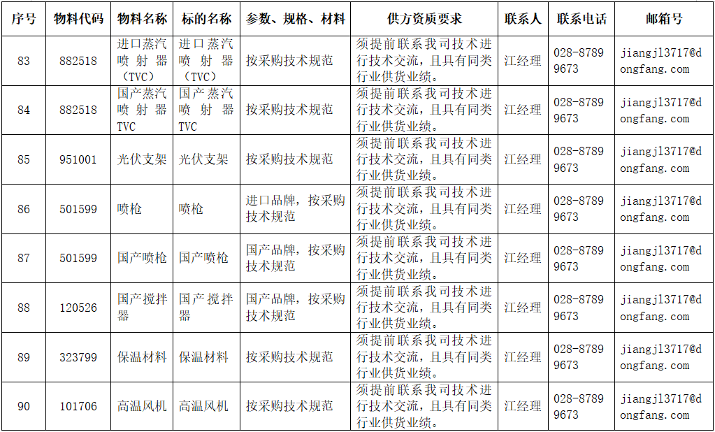 东方电气集团东方锅炉股份有限公司供应商公开寻源公告