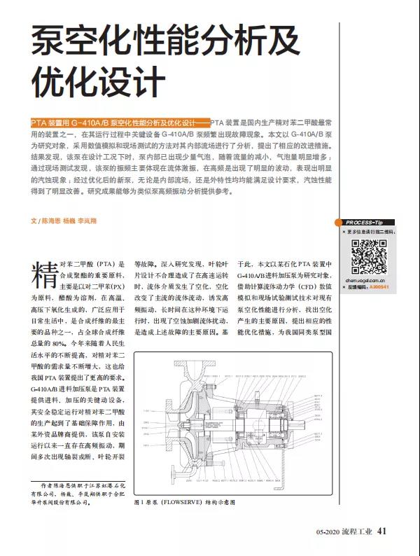 PTA 装置是国内生产精对苯二甲酸最常用的装置之一,在其运行过程中关键设备G-410A/B 泵频繁出现故障现象。本文以 G-410A/B 泵为研究对象,采用数值模拟和现场测试的方法对其内部流场进行了分析,提出了相应的改进措施。
