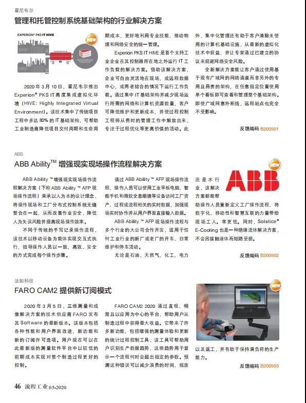 每一期,《流程工业》还会为大家甄选近期发布的行业新品,从软件到硬件,从系统到设备,满足大家的采购需求。