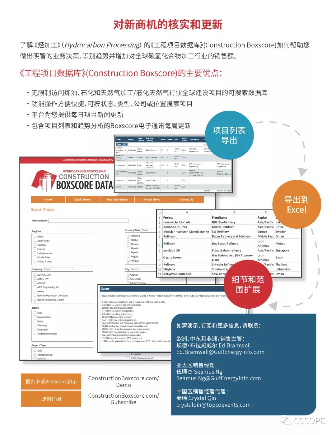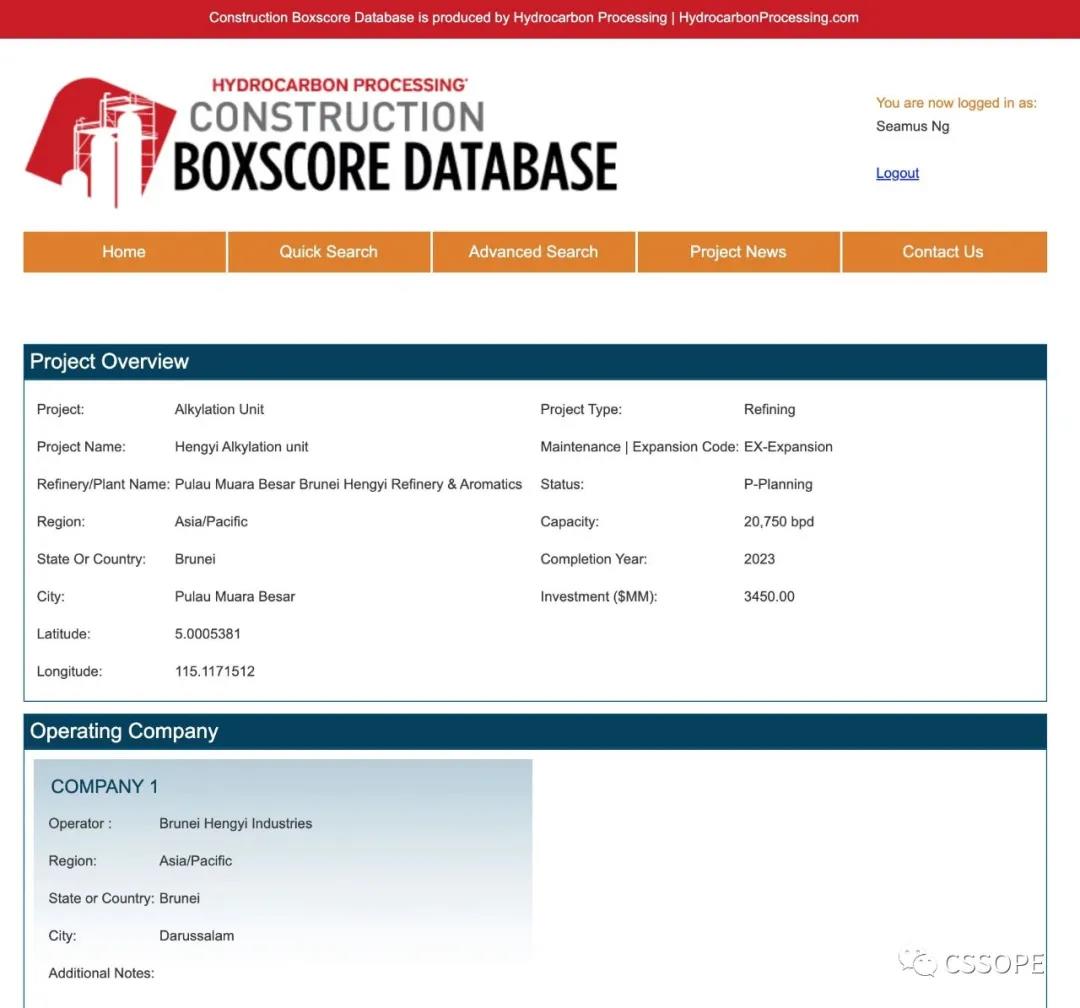 《烃加工》Boxscore Database:亚太区拟在建炼厂项目153个