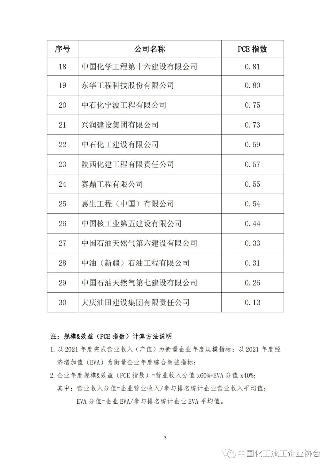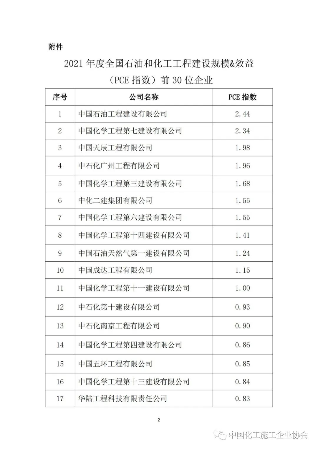您现在的位置是:首页 > 新闻资讯网站首页新闻资讯 关于发布《2021年度全国石油和化工工程建设行业规模&效益(PCE指数)前30位企业》的通知 来源:中化施协秘书处 2022-11-04 TAG: 无标签 上一篇:壳牌与中国石化、中国宝武、巴斯夫合作寻求在中国建设开放式碳捕集、利用与封存项目的机会 下一篇:ABB五度赴约进博会,以数字化技术赋能绿色低碳发展 相关文章 特别推荐 【火爆出炉】CSSOPE 2025 全球采购对接会排期表 阅读 全球氢能项目大汇总,快来点击索要 阅读 随机推荐 5.5亿美元!Yinson为巴西石油公司Enauta提供一艘FPSO 五建公司签约沙特贝里油气处理项目 2021-05-25 09:21:15 世界最长的黄泽山至鱼山原油管道开始供油! 2022-12-28 17:41:10 22.4亿美元!中石化中标沙特大型项目 2024-10-08 09:24:35 广东石化乙烯装置再添新地标 2021-09-02 16:14:44 点击排行 中国石化与中国海油签署全面深化战略合作协议 意大利塞班( SAIPEM)油气项目及采购计划:CSSOPE 为你解读 2019-03-14 15:21:04 集团公司召开2019年HSSE工作视频会议 2019-01-04 18:12:57 石油党员党建信息化平台交纳党费上亿元 2019-01-11 16:33:49 中国石油2022年集中采购招标公告 2022-02-11 20:43:22 标签 会议 中国石化新闻网 中国石油新闻中心 转载 原创 关注我们