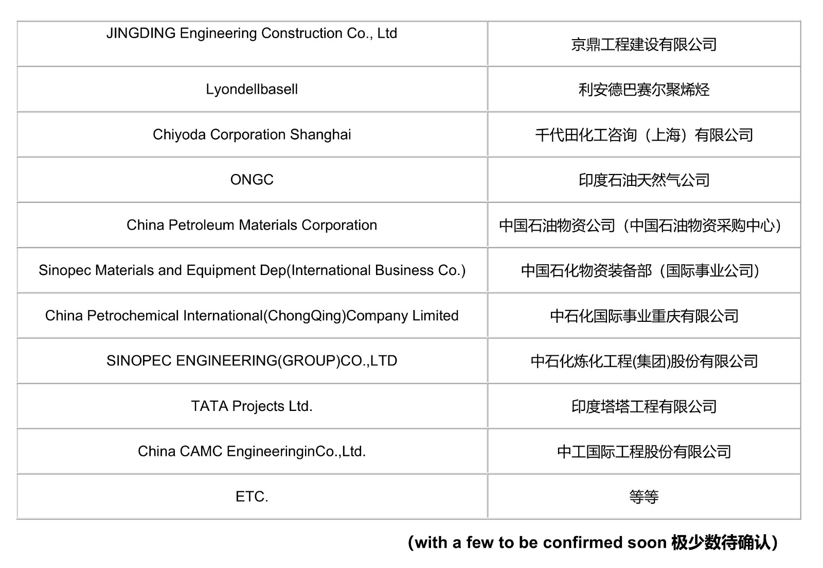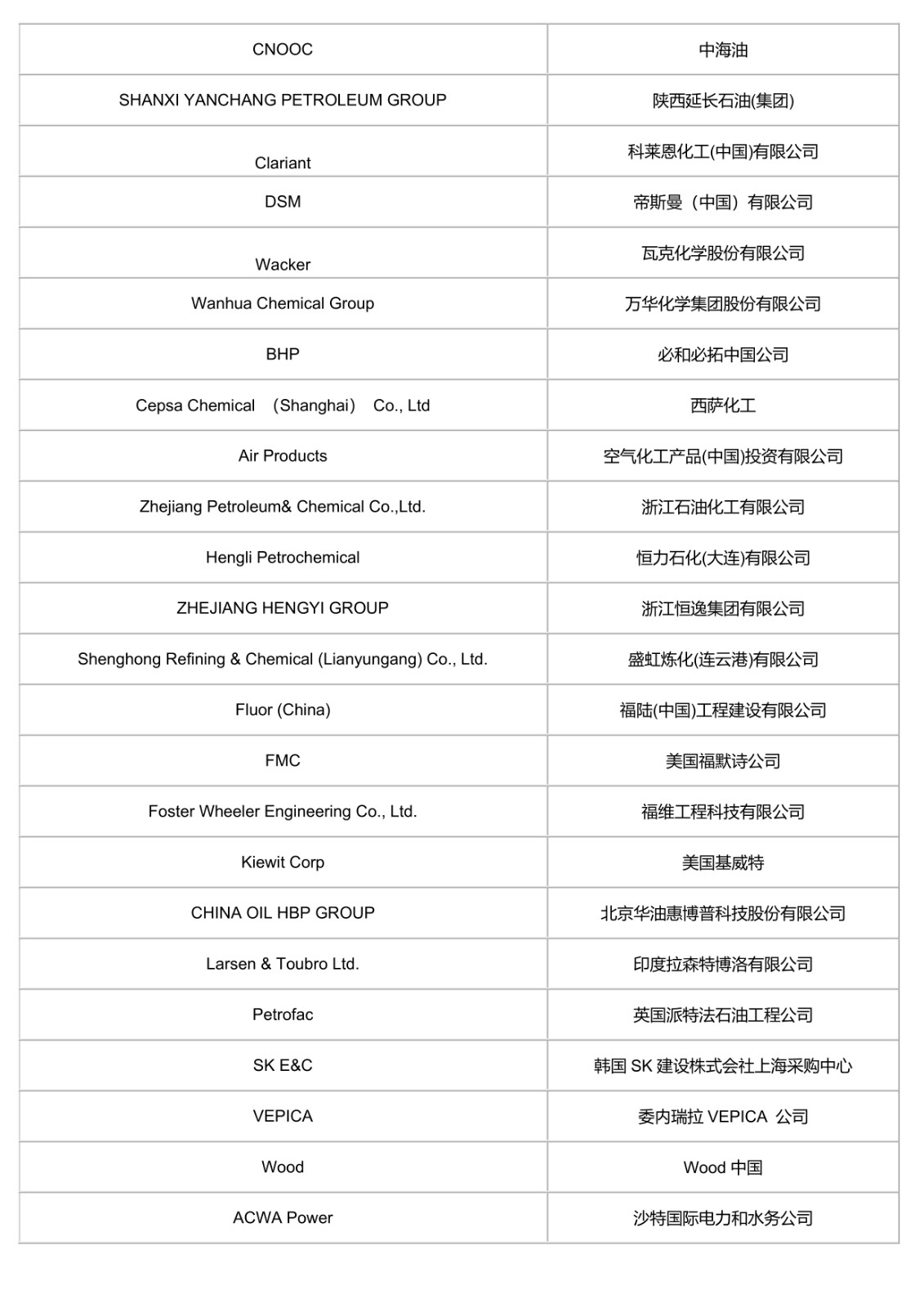 目前,众多行业领军企业纷纷报名参会,与来自 国内外石油化工行业高层、采购专家和优秀供应商决策层交流最新行业趋势、项目管理解决方 案、采购供应链管理理念、采购经验、采购计划、项目动态、最新技术产品等前沿信息。相信中国优秀设备商的展示和交流将引起来自全球石油石化业主、工程公司、行业采购专家和合作方的浓厚兴趣,必将增进与采购商的长期合作,加速布局全球市场,占领更多市场份额。