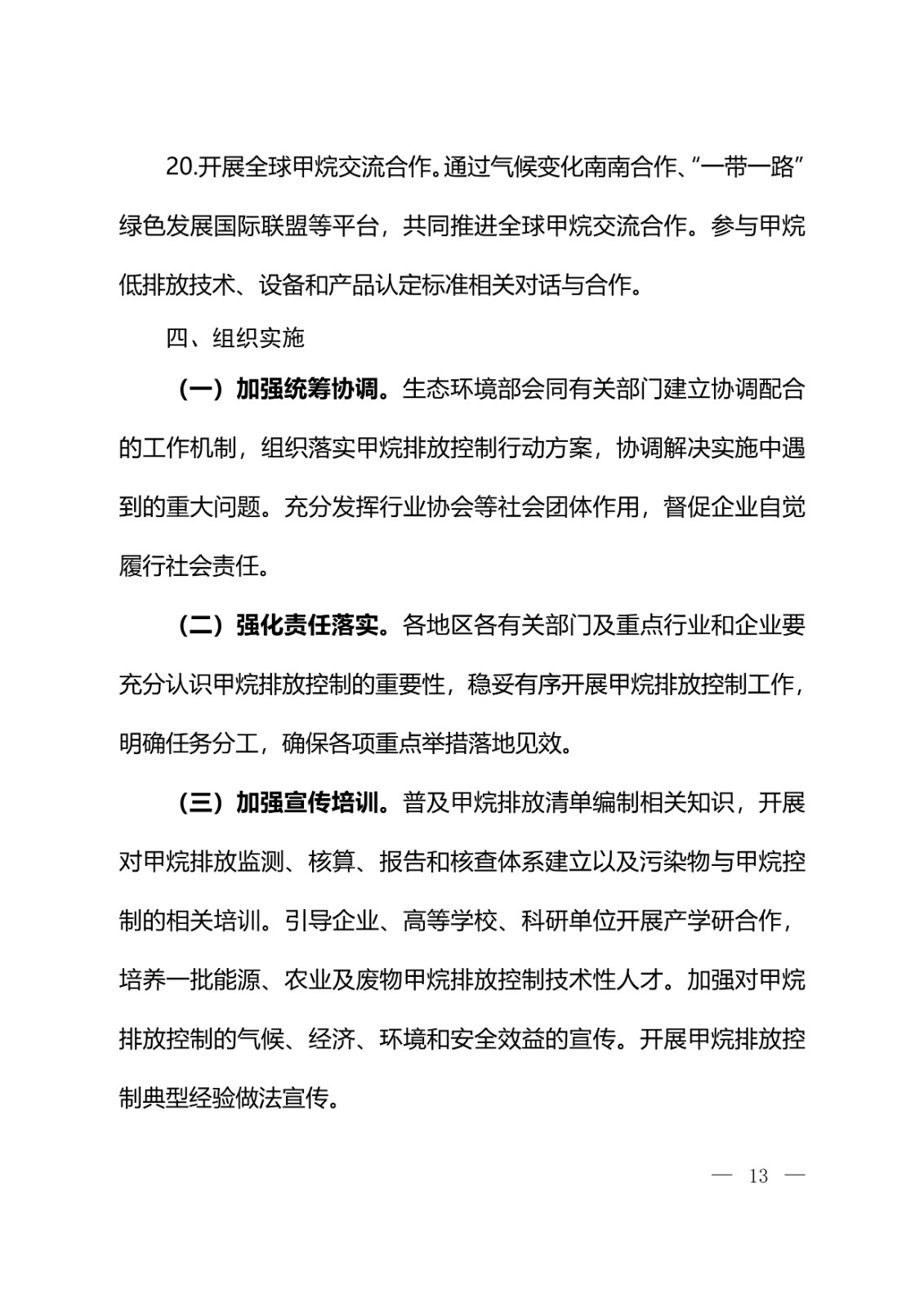 生态环境部等11部门关于印发《甲烷排放控制行动方案》的通知各省、自治区、直辖市人民政府,新疆生产建设兵团,国务院有关部门:经国务院同...