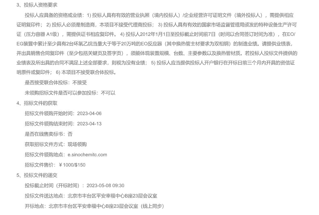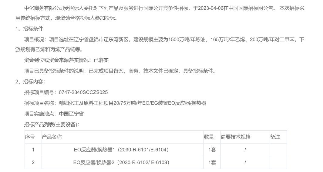 您现在的位置是:首页 > 拟在建项目网站首页拟在建项目 北方华锦联合石化有限公司精细化工及原料工程项目20/75万吨/年EO/EG装置EO反应器/换热器招标公告 管理员 2023-04-10 TAG: 无标签 上一篇:精细化工及原料工程项目渣油加氢、芳烃联合等装置循环氢压缩机;高丙烯催化裂化、延迟焦化装置富气压缩机招标公告 下一篇:精细化工及原料工程项目3X82000标准立方米每小时(02)成套空分装置采购招标公告 相关文章 特别推荐 【火爆出炉】CSSOPE 2025 全球采购对接会排期表 阅读 全球氢能项目大汇总,快来点击索要 阅读 随机推荐 从中东到阿塞拜疆,原油现货溢价全线飙升!油价破百只... 【项目信息】中亚炼油厂项目分布图 2020-11-20 09:37:06 需求缩水,全球LNG“卖不动”! 2020-06-22 17:25:08 阿布扎比国家石油与多家承包商签署FEED协议 2021-08-25 15:21:30 中工国际党委书记、董事长王博一行来集团参观考察 2021-07-22 09:05:39 点击排行 奇美将在福建漳州新建18万吨PC装置 意大利塞班( SAIPEM)油气项目及采购计划:CSSOPE 为你解读 2019-03-14 15:21:04 集团公司召开2019年HSSE工作视频会议 2019-01-04 18:12:57 石油党员党建信息化平台交纳党费上亿元 2019-01-11 16:33:49 中国石油2022年集中采购招标公告 2022-02-11 20:43:22 标签 会议 中国石化新闻网 中国石油新闻中心 转载 原创 关注我们