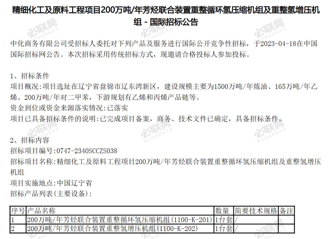 您现在的位置是:首页 > 拟在建项目网站首页拟在建项目 北方华锦联合石化有限公司精细化工及原料工程项目200万吨/年芳烃联合装置重整循环氢压缩机组及重整氢增压机组招标公告 管理员 2023-04-19 TAG: 无标签 上一篇:总投资超5700亿!广西钦州公布2023年重大项目实施方案!包括这些石化项目! 下一篇:东华科技西藏碳酸锂项目首台大型设备吊装完成 相关文章 特别推荐 【火爆出炉】CSSOPE 2025 全球采购对接会排期表 阅读 全球氢能项目大汇总,快来点击索要 阅读 随机推荐 从美国到中东,都快装不下油了!全球原油储存空间或三... 三星工程将在马来西亚建造甲醇工厂 2020-12-14 10:07:56 108亿!20万吨醋酸乙烯!古雷福建海泉化学有限公司项目开工 2022-01-06 09:20:08 国企改革“科改行动”“双百行动”扩围 石油和化工企... 2023-05-18 14:34:24 杭州汽轮新能源有限公司成功签订国电投大泽项目设备供... 2023-08-14 09:51:41 点击排行 喜报!天辰公司华亭FMTP科技示范项目主风机汽轮机冲转... 意大利塞班( SAIPEM)油气项目及采购计划:CSSOPE 为你解读 2019-03-14 15:21:04 集团公司召开2019年HSSE工作视频会议 2019-01-04 18:12:57 石油党员党建信息化平台交纳党费上亿元 2019-01-11 16:33:49 中国石油2022年集中采购招标公告 2022-02-11 20:43:22 标签 会议 中国石化新闻网 中国石油新闻中心 转载 原创 关注我们